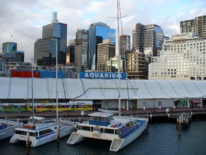 Aquarium, Ausflugskatamarane und Skyline von Sydney